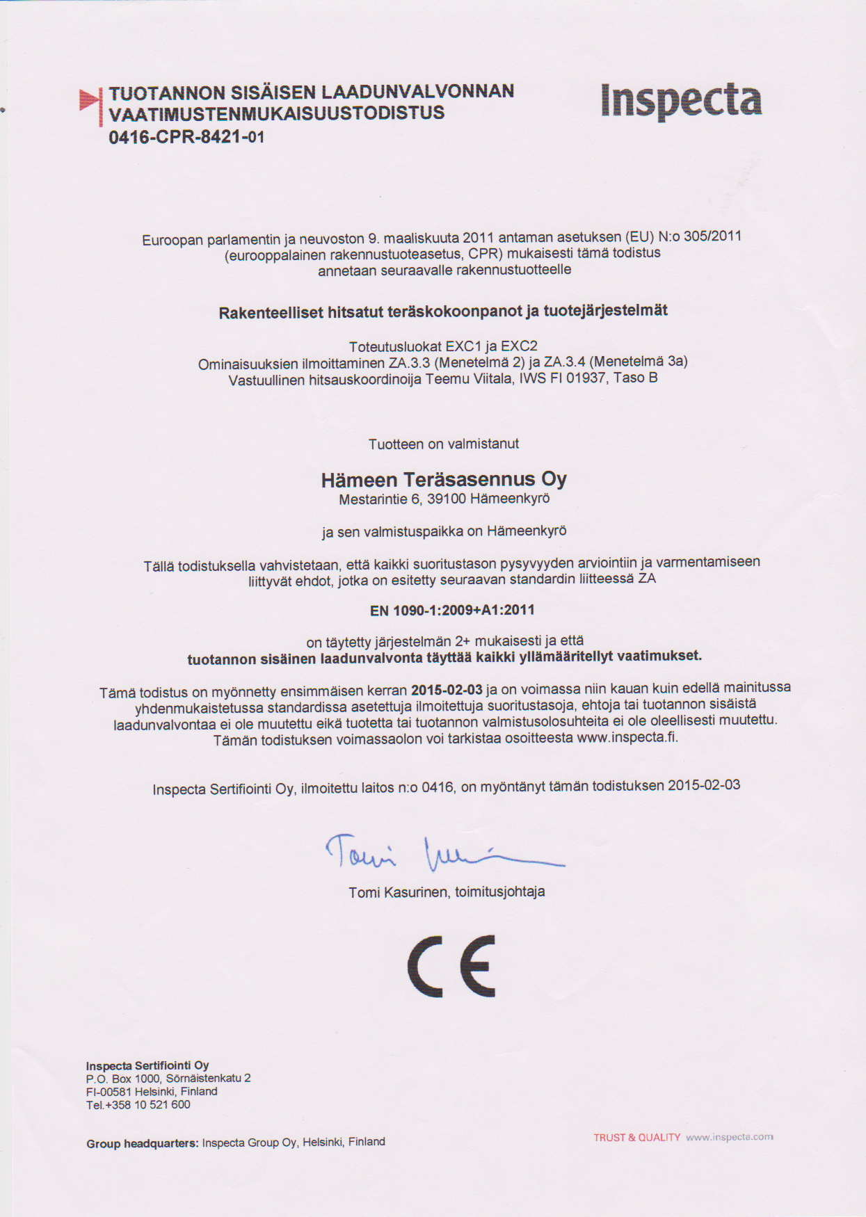 Yrityksellämme on CE-merkintä ja AA-luottoluokitus!